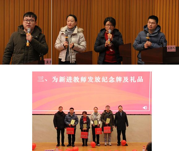 团拜会第二部分是为2023年新进青年教师举办欢迎仪式。潘克家副院长宣读新进教师名单,感谢并欢迎熊春河、谢维洪、温哲鑫、曲扬、杨志红、王明等6位青年才俊加入数统院大家庭,祝愿大家与数院共成长,实现人生理想。温哲鑫等新进青年教师依次上台作自我介绍并发表入职感言,在新的开端,努力工作,与学院同行,共创美好明天。学校发展规划与学科建设处焦勇处长、学院原党委书记段泽球同志为温哲鑫等人发放学院特别制作的新进教师入职纪念牌和礼品。