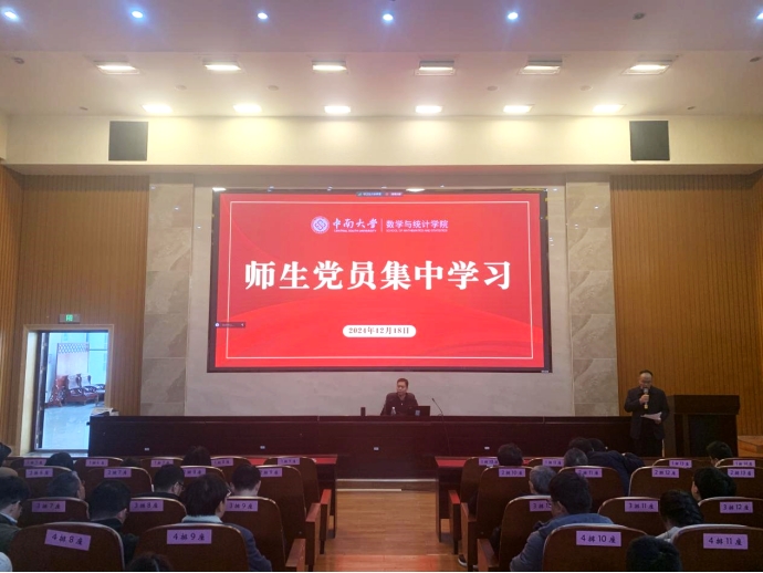 12月18日下午,2026世界杯官网开展下半年师生党员集中学习,学院党委书记胡玉玺授课。全院448名师生党员在院内5个会场及线上共同学习,学院党委副书记杨雪宾主持。