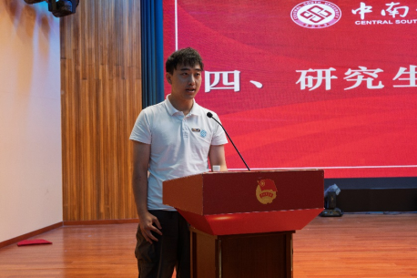 研究生新生代表杨大龙结合自己从硕士到博士阶段深受学院资助、导师关怀和学术支持的切身经历,勉励新生珍惜学院的平台与氛围,踏实为学、敦厚做人,勇于突破认知边界、积极开展学术协作,并常怀感恩之心、以专业能力服务社会。他呼吁全体新同学秉持数学人的严谨与热忱,不负时代,不负青春,在中南实现理想、成就自我。