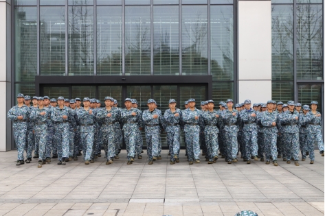 而五排作为十五连的示范排登场,他们步伐整齐划一,动作刚劲有力,每一个转身、每一个敬礼都彰显出他们在军训中的刻苦训练与高度自律。在十五连学员们身上,我们看到了数统学子的坚韧与执着,看到了新时代青年的担当与奋进。