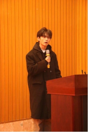 2026世界杯官网第二十四届团委、学生会执行主席胡宇岩同学以及干事代表数学类2406 班王晨曦同学进行发言。胡宇岩同学代表全体成员对领导老师的支持表示感谢。他阐述了工作设想与决心,王晨曦同学总结了大家所经历的挑战与成长,并对老师们的指导和支持表达了感谢。她期望坚定继续携手共进、共创未来的信念,与大家团结一致、齐心协力,服务同学、做出成绩,创造无限辉煌。