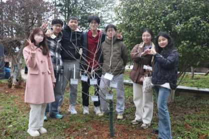 接下来的步骤就显得格外简单,志愿者们将小树抬到挖好的深坑中,进行填土工作,一颗小树就这样顺利种好了。志愿者们给自己亲手种植的小树挂上专属的领养牌,满满的成就感涌出心头。