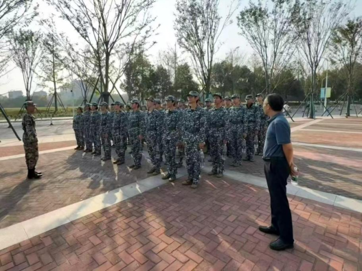 当清晨第一缕阳光洒下,身着绿色迷彩的同学们沐浴着微光,在教官的带领下,顺着队伍激动而又紧张地前往训练地点,满怀好奇与期待开始了一天艰辛的训练。军训第一日的主要内容为适应性训练,动作虽简,标准不降。烈日之下,同学们屏息凝神、咬牙坚持,十分钟纹丝不动,汗水顺着下巴滴落,却无一人喊退。