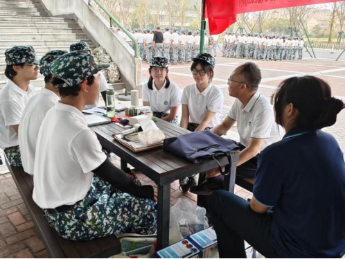 随后,军训营营长来到训练场地视察指导工作。他沿着各连队训练区域细致查看,对同学们在高温天气下依然保持的良好精神状态给予肯定。在随后的讲话中,营长勉励全体新生以军训为契机锤炼意志、团结协作。这番讲话简短而有力,赢得了新生们的热烈掌声。