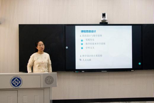答辩环节分项目结题汇报答辩、项目中期检查答辩以及新增项目申报答辩三部分。彭君、郭尧琦老师分别作了《概率论与数理统计》与《产业经济统计课程建设》的项目结题答辩。接着,作中期检查答辩的有以彭君、李俊平、汪炎汝老师为负责人的三个项目:从课程思政研究背景说起,各负责人汇报了所做的主要工作,已取得的阶段性成果,并就具体的思政教学案例进行充分的展示。由测度论中的基本概念σ-域定义中包含其对集合可数运算的封闭性,李俊平老师类比出客观事物的无限发展性以及人类认识从无限到有限的规律性,以此教育学生在认识事物和科学研究中不能浮于表面。汪炎汝老师巧妙引入伯努利模型,通过对模型的分析实现对学生辩证唯物主义世界观以及坚持不懈品质的培养。