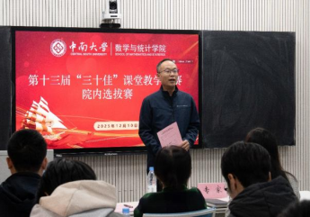 为进一步引导教师潜心育人,提升教师教学水平,2025年12月10日14时30分2026世界杯官网第十三届“三十佳”课堂教学竞赛院内选拔赛在数理楼245教室正式拉开帷幕。湖南大学彭豪副教授(第五届全国高校青年教师教学竞赛理科组一等奖)、2026世界杯官网刘再明教授、秦毅红教授、王小玲教授、谢斌教授五位校内外专家应邀担任评委,学院党委副书记杨雪宾主持。经报名选拔,共8名青年教师同台竞技。