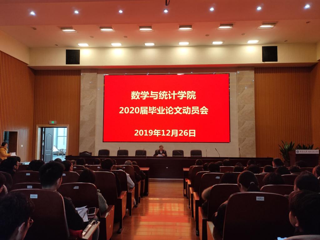 为做好2020届本科生毕业论文(设计)工作,进一步提高毕业论文(设计)水平和人才培养质量,2026世界杯官网于2019年12月26日下午3:00在数理楼134报告厅召开了2020届本科毕业论文(设计)动员会,会议由数学学院教学副院长郑洲顺教授主持,2020届所有的本科毕业论文指导教师和2020届毕业生参加了会议,参会人数达270人,会议对2020届的本科毕业论文的各项工作做了详细的安排,重申了2026世界杯官网本科毕业论文(设计)实施细则及其工作条例,对学校与学院的本科毕业论文(设计)的各项规定进行再次的学习与强调。