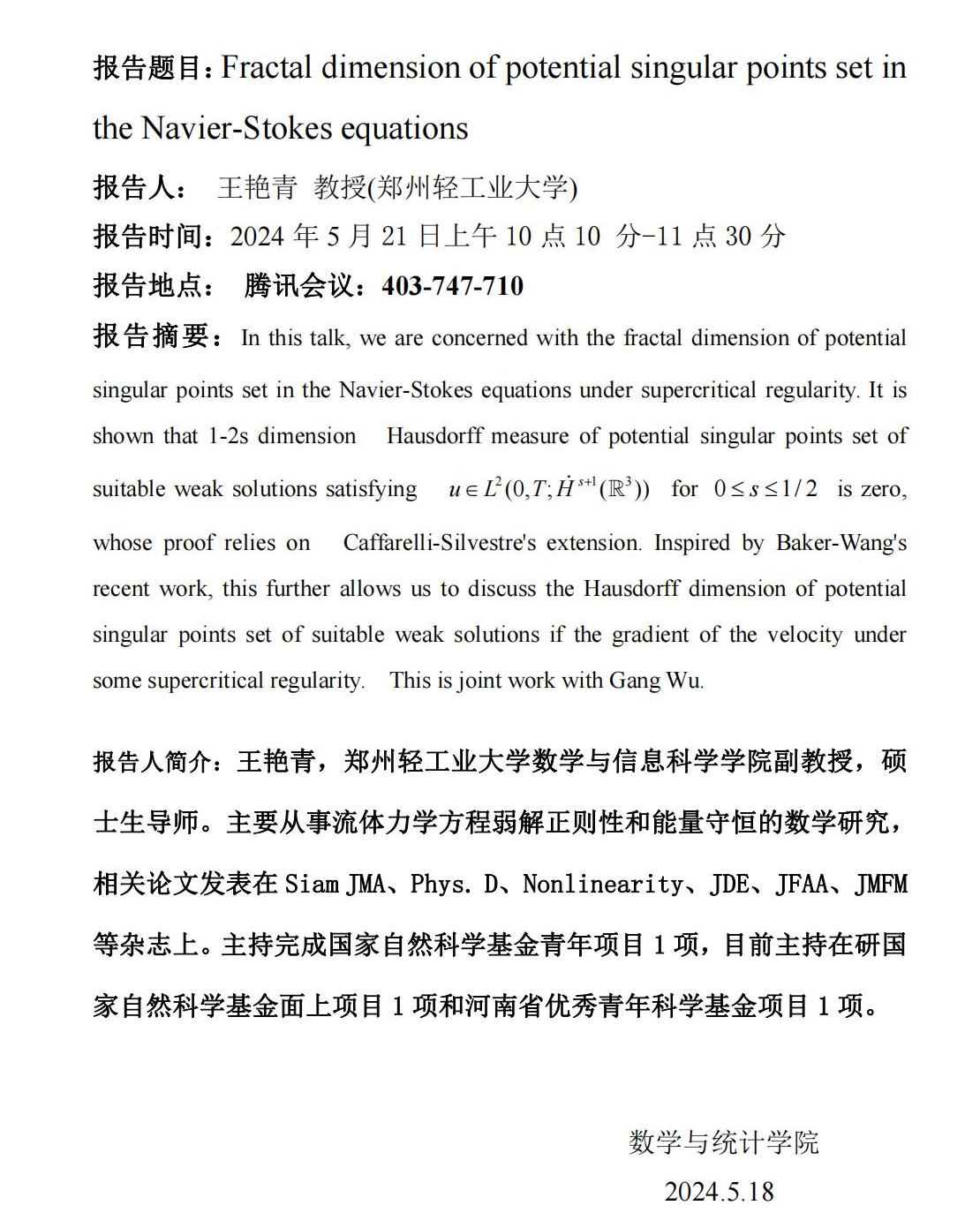 偏微分系列报告:Fractal dimension of potential singular points set in the Navier-Stokes equations
