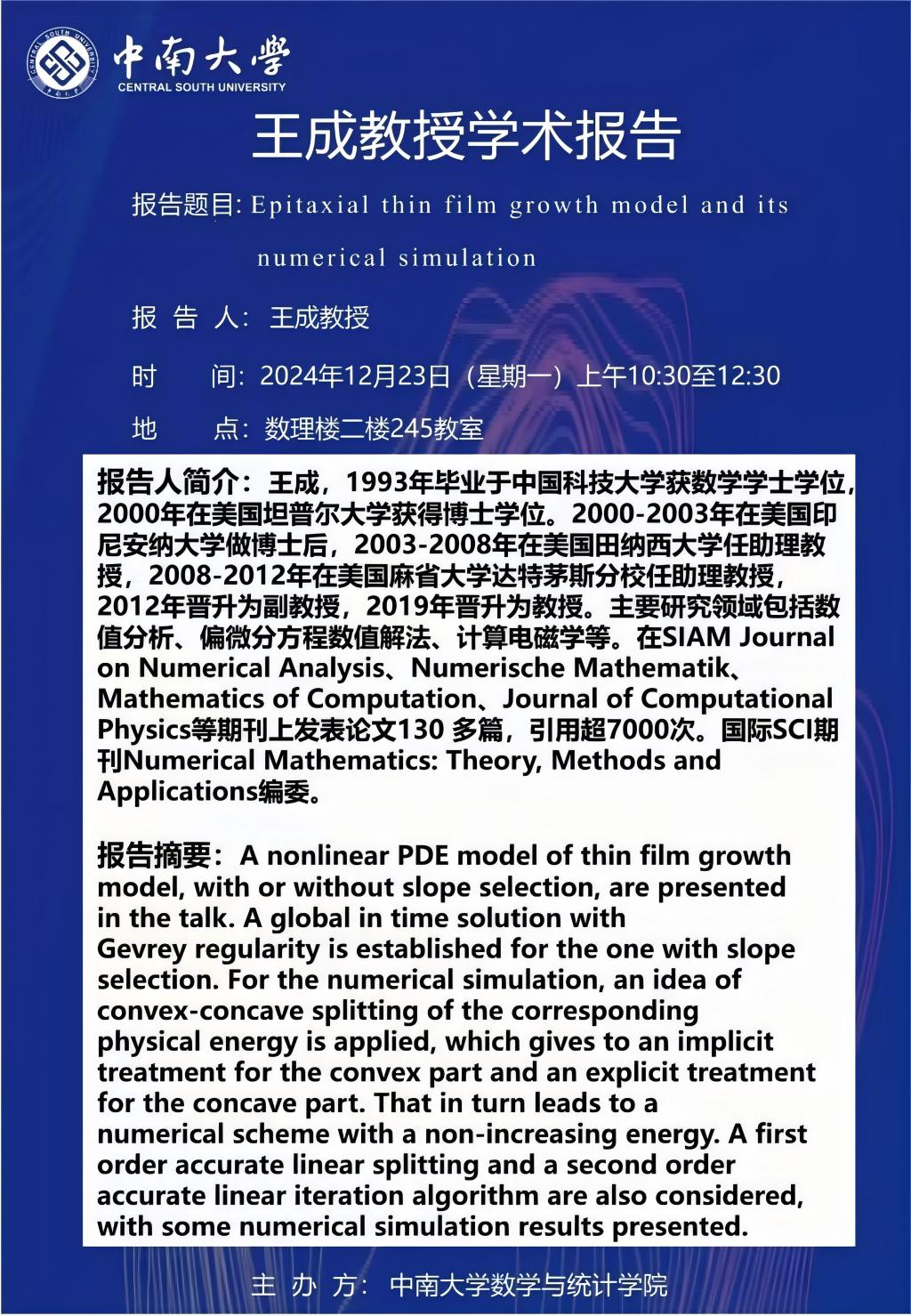 王成教授学术报告